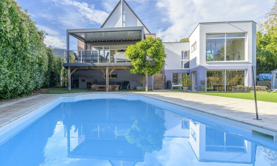 Un volume lumineux au bord de l'eau : Nichée dans une impasse calme de Plobsheim, cette maison d'architecte conjugue lignes pures, volumes généreux et lumière omniprésente. Une grande terrasse suspendue prolonge les pièces de vie vers l'extérieur, sur un jardin paysagé bordé d'un cours d'eau, le Krimmeri. La piscine chauffée, les équipements haut de gamme et l'extension indépendante en font un bien aussi fonctionnel qu'élégant. Une maison contemporaine avec piscine, parfaite pour une famille en quête d'espace et/ou d'une activité libérale aux portes de Strasbourg. Avis de l'agence : Cet ensemble séduit par sa cohérence, son articulation claire entre sphère privée et espace professionnel, et l'équilibre subtil entre modernité architecturale et douceur résidentielle. Une maison moderne et intemporelle pour ceux qui cherchent un cadre de vie élégant, connecté à la nature, tout en restant à proximité directe de Strasbourg et des échanges transfrontaliers. Un bien rare, entre sérénité et fonctionnalité. Dossier complet sur demande. Marion JULLY (EI) Agent Commercial - Numéro RSAC : - .