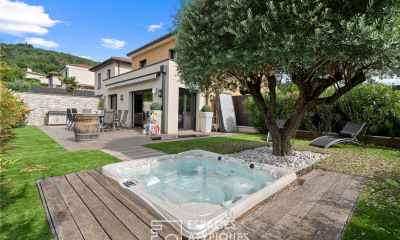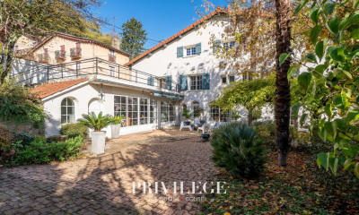 Propriété ancienne avec jardin, dans les hauteurs de Collonges au Mont d'Or Vavro Immobilier vous propose de découvrir cette charmante propriété ancienne de 1750. Surface habitable de 192,42 m² / 227 m² au sol. Elle est idéalement située, sur les hauteurs de Collonges-au-Mont-d'Or, offrant une vue dégagée. Environnement privilégié, au calme, orientation parfaite pour profiter du jardin de 1344 m² et de la piscine. Le bien est en excellent état, chauffage pompe à chaleur et gaz de ville. Charme de l'ancien incontestable. Au rez-de-chaussée, une entrée distribue une vaste pièce de vie de 43 m² avec cuisine ouverte et salle à manger, ainsi qu'un séjour chaleureux de 40 m² avec cheminée traditionnelle en fonction. Ces deux espaces bénéficient d'une vue dégagée sur la parcelle, offrant luminosité et cadre agréable. On dispose également d'un bureau, implanté dans la petite tour de la bâtisse, ainsi que des WC indépendants. À l'étage, profitez de trois chambres de 11,78 m², 14,22 m² et 23,94 m², dont une suite parentale avec une salle d'eau et des WC. Une salle de bains, ainsi que des WC complètent l'espace nuit des enfants. Au rez-de-jardin, vous disposez d'une quatrième chambre de 17 m² ainsi qu'un studio indépendant comprenant une pièce de vie de 18 m², une salle d'eau avec WC, idéal pour une profession libérale ou pour un usage locatif. À l'extérieur, vous bénéficiez d'un magnifique terrain paysagé de 1 344 m², agrémenté d'une terrasse d'été surplombant la parcelle. Un chemin en pierre aménagé permet de rejoindre facilement la piscine située en contrebas. A l'entrée de la parcelle, un parking offre un accès pratique et sécurisé pour plusieurs véhicules. Pour plus de renseignements, veuillez contacter notre conseiller. Honoraires inclus de 2.04% TTC à la charge de l'acquéreur. Prix hors honoraires 1 176 000 euros. Classe énergie D, Classe climat D Montant estimé des dépenses annuelles d'énergie pour un usage standard : entre 4020.00 euros et 5490.00 euros sur les années 2021, 2022 et 2023 (abonnements compris). Les informations sur les risques auxquels ce bien est exposé sont disponibles sur le site Géorisques : georisques.gouv.fr. Votre conseiller vavro immobilier : Gérant - Baptiste VAVRO