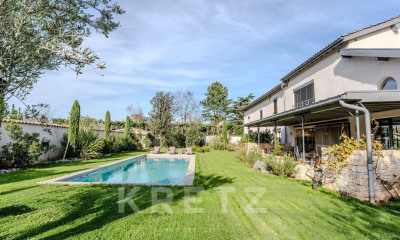 Elégance, charme et nature !! C'est ce que cette maison propose grâce à son origine début XXème et complétée par une extension très inspirée de la période "Art Nouveau" qui confère une âme unique à ce lieu de vie. La pièce de réception bénéficie d'une luminosité rare grâce à ses puits de lumière parfaitement intégrés et ses larges ouvertures vitrées donnant accès à une terrasse suspendue permettant de profiter pleinement de la vue panoramique et du jardin. La magnifique cuisine contemporaine, en lien avec la pièce de réception profite également des très généreux volumes de la pièce principale et elle est adossée à un office/buanderie bénéficiant d'un accès indépendant. Egalement en rez de chaussée, une élégante Suite Parentale avec salle de bains pour profiter du calme et de la verdure environnante. En étages, et toujours avec la même élégance, nous découvrirons deux très spacieuses chambres dont une avec un balcon. L'ensemble étant complété par une magnifique salle d'eau. Et que dire du jardin, véritable écrin de nature niché à quelques pas du centre du village et à proximité de commodités de transport. La terrasse pleine de charme nous laisse augurer de magnifiques moments de détente, ce lieu est un oasis pour les amoureux de nature. Un garage complète cette propriété et plusieurs espaces de stationnement sont possibles. Découvrons ensemble ce lieu ou le "bon vivre" est une évidence !!