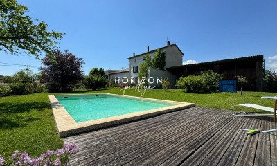 Située en plein coeur des vignes du Beaujolais, cette maison vigneronne en pierre, de 211 m² habitables, et 820m2 de surface utile, nichée sur un terrain paysager d'environ 1850 m², déploie une architecture typique de la région sublimée par des volumes généreux. Son panorama exceptionnel, sa terrasse couverte avec vue dégagée, son vaste jardin arboré et sa cave voûtée en font une demeure singulière, au cachet rare. La maison principale, montée sur caves et garages, s'articule autour d'une galerie couverte, profitant d'un vaste espace de vie baigné de lumière, sublimé par une hauteur sous plafond généreuse, des poutres apparentes et une cheminée en pierre. La pièce à vivre s'ouvre naturellement sur une terrasse en bois, offrant une vue imprenable sur les coteaux. La cuisine, semi-ouverte, s'intègre dans un esprit chaleureux et convivial. L'espace nuit comprend deux chambres spacieuses, avec chacune leur salle d'eau, ainsi qu'un bureau et des espaces de rangement fonctionnels. Une mezzanine et un grenier permettent d'imaginer la création de chambres supplémentaires aisément. L'ensemble offre un agencement fluide, idéal pour une vie de famille ou un projet de maison d'hôtes. En effet, l'aile de la maison, autrefois à usage de cuvage, laisse des possibilités multiples pour un usage professionnel: gite, chambres d'hôtes.. À l'extérieur, le charme opère instantanément : une allée pavée, un jardin arboré soigneusement entretenu, une terrasse couverte orientée plein sud, et une cave de vinification en pierres, authentique vestige du passé viticole du domaine. Chaque espace extérieur invite à la contemplation, au calme et à la convivialité, dans un environnement préservé. Située à proximité immédiate des commodités, cette propriété se trouve à 45 min de Lyon et à quelques kilomètres de toutes les infrastructures scolaires et commerciales. Un bien unique au coeur d'un paysage classé, conjuguant art de vivre, patrimoine et nature. Plus d'informations et dossier disponible auprès de notre agence. CLASSE ENERGIE : D / CLASSE CLIMAT : D - Montant moyen estimé des dépenses annuelles d'énergie pour un usage standard, indexées aux années 2021, 2022, 2023 : entre 3910 euros et 5330 euros. (abonnement compris). Les informations sur les risques auxquels ce bien est exposé sont disponibles sur le site Géorisques pour les zones concernées. Contact : Florent GUILLOUX
