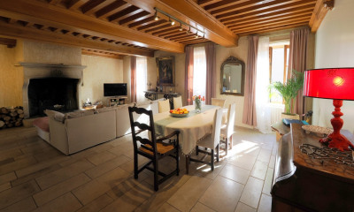 En Saône-et-Loire, au coeur d'un village et à 30 min d'une gare TGV, une maison de maître et sa piscine sur un terrain de 5 600 m². De la rue, un portail en fer forgé, doublé d'un portillon, débouche sur une large allée centrale qui mène à l'entrée de la maison, via un emmarchement en pierre. Une terrasse prolonge l'ensemble. Le logis principal, édifié au 17e s., a été profondément remanié au 19e s. pour lui octroyer sa forme actuelle. Bâti suivant un plan rectangulaire, il est élevé de deux niveaux : sa façade, quasiment symétrique, comprend deux élévations, une de chaque côté, ainsi qu'une extension au sud, sa toiture est en tuiles canal typiques de la région. La maison est implantée au centre du jardin arboré, en grande partie clos de murs en pierre. Légèrement à l'écart, la piscine et une cuisine d'été attenante constituent un espace de vie à part entière. L'ensemble, régulièrement entretenu et rénové, est en bon état général.