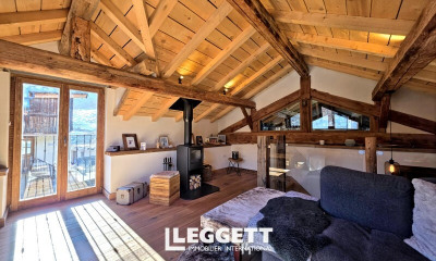 Venez découvrir ce demi chalet neuf répondant aux standards haut de gamme de l'immobilier. Idéalement situé, à seulement 3 minutes en voiture des pistes de ski, vous pourrez être les premiers à dévaler les pentes du domaine des 3 Vallées. Le bien dispose de 157,8 m² de surface habitable répartis sur 2 niveaux. Vous retrouverez 4 chambres doubles en suite, une pièce à vivre de près de 49 m² avec cheminée ainsi qu'un espace détente avec sauna et un jardin privatif avec jacuzzi. Vous pourrez également profiter du calme et de la splendide vue sur les montagnes environnantes depuis les trois terrasses et le balcon que propose ce chalet. 2 places de stationnement en extérieur. Pour une visite virtuelle, nous contacter ! Certains visuels sont des propositions d'aménagement. Copropriété de 2 lots.