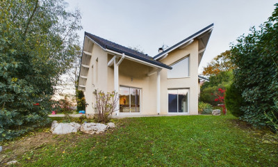 Au Viviers-du-Lac, entre Chambéry et Aix-les-Bains, à 10 min d’Aix-les-Bains, 20 min de Chambéry, 5 min de Savoie Technolac, 3 min de la gare et 2 min de l’autoroute, emplacement stratégique pour cette villa individuelle de type 4 offrant 95,3 m² composé au rez de chaussée de plain-pied, cuisine ouverte sur séjour, cellier et WC indépendant ; à l'étage, trois chambres, salle de bains équipée. Le tout avec terrasse, jardin privatif, garage et parking privé. Prestations de qualité : chauffage par pompe à chaleur, plancher chauffant, menuiseries aluminium à rupture de pont thermique, volets roulants électriques. Résidence sécurisée par une barrière électrique.