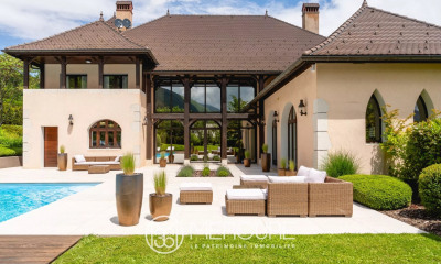 ANNECY SOTHEBY'S INTERNATIONAL REALTY a le plaisir de vous présenter cette villa contemporaine d'exception, idéalement posée entre lac et montagnes, au cœur d'un environnement calme et préservé. Ici, architecture, lumière et nature se répondent avec une harmonie rare. Son orientation plein sud et ses lignes épurées offrent un tableau quotidien sur le lac d'Annecy et les reliefs environnants. Les volumes généreux, magnifiés par une hauteur sous plafond cathédrale, laissent la lumière traverser chaque espace de vie. La cuisine ouverte, prolongée par la terrasse d'été, se veut conviviale et fonctionnelle, tandis que le séjour offre une atmosphère chaleureuse et apaisante. Les chambres, spacieuses et lumineuses, ont été pensées pour offrir confort et intimité. La suite parentale, avec son extérieur privatif et sa salle de bains ouverte, compose un véritable cocon suspendu entre ciel et lac. Un atelier de plain-pied, entièrement aménageable, vient compléter la propriété. Véritable espace à imaginer, il bénéficie déjà des raccordements nécessaires pour accueillir cuisine et salle d'eau. Cabinet d'art, studio indépendant pour invités, espace pour activité libérale ou créative : les possibilités sont multiples. À l'extérieur, la signature est la même : raffinement et sérénité. Piscine chauffée, terrasses ombragées, coins de détente… chaque espace a été pensé pour profiter pleinement du panorama et de la quiétude absolue. À quelques minutes d'Annecy et à proximité de Genève, cette villa au design résolument contemporain incarne l'art de vivre alpin dans toute sa splendeur. Une adresse rare, où élégance, confort et douceur de vivre se rencontrent. ANNECY SOTHEBY'S INTERNATIONAL REALTY, votre expert dans la vente et la location de propriétés de luxe sur le bassin Annécien et les Aravis.