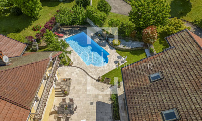 ANNECY SOTHEBY'S INTERNATIONAL REALTY vous propose une lumineuse villa de 208 m² habitables, située au chef-lieu d'Annecy-le-Vieux, dans une impasse sécurisée, calme et recherchée.?Elle bénéficie d'une position dominante avec une belle vue dégagée sur Annecy. Elle offre une vaste pièce de vie de 52 m² qui ouvre sur une terrasse idéalement exposée et un terrain arboré de 1 330 m² avec piscine chauffée et sécurisée. L'espace nuit se compose de 5 chambres dont une suite avec salle d'eau et une suite parentale indépendante avec dressing et salle d'eau. La villa bénéficie également d'un garage carrelé de 37 m², de 2 caves totalisant 23 m² et d'un espace extérieur permettant le stationnement de 5 véhicules. Les commodités sont à proximité et l'accès autoroute est rapide. Prestations de qualité, climatisation, environnement valorisant, exposition idéale, à deux pas du centre historique d'Annecy-le-Vieux : un bien rare à découvrir. ANNECY SOTHEBY'S INTERNATIONAL REALTY, votre expert dans la vente et la location de propriétés de luxe sur le bassin annécien et les Aravis.
