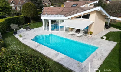 LAC LEMAN SOTHEBY'S INTERNATIONAL REALTY vous propose : Au cœur d'un environnement champêtre et préservé, un de corps de ferme datant de 1900 et rénovée avec élégance. Situé à proximité immédiate de la frontière suisse, ce bien conjugue charme authentique et confort contemporain. Développant 239 m² habitables, il offre une pièce de vie généreuse et lumineuse, sublimée par les pierres et poutres apparentes qui confèrent à l'ensemble un caractère chaleureux. La partie nuit propose trois chambres, dont une avec mezzanine, accompagnées d'une salle de bains et de deux salles de douche. En option, il est également possible d'acquérir une aile attenante d'environ 139 m² de surfaces brutes, permettant d'envisager différents projets d'aménagement : extension de l'espace principal, création d'un volume indépendant ou aménagements annexes selon les besoins. Cette propriété rare, alliant cachet, luminosité et potentiel d'évolution, séduira les amateurs d'authenticité et de belles perspectives de valorisation. LAC LÉMAN SOTHEBY'S INTERNATIONAL REALTY, votre expert de référence pour la vente de propriétés de prestige sur les rives du Léman et ses environs.