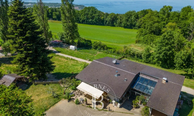 Située à moins de 10 minutes d'Évian-les-Bains et des premiers reliefs alpins, cette propriété du XIXe siècle se trouve sur le plateau de Gavot, entre lac et montagne. Entièrement réhabilitée récemment par un architecte et des artisans locaux de renom, elle bénéficie d’un emplacement privilégié, en plein cœur du village, dans un environnement paisible. Alliant cachet historique et confort moderne, la maison séduit par la qualité exceptionnelle de ses matériaux. Conçue pour accueillir une famille, elle offre la possibilité d’être aménagée en un seul logement spacieux ou en deux appartements indépendants et/ou communicants, selon les besoins. Polyvalente, elle convient aussi parfaitement à ceux qui souhaitent profiter des avantages d’un habitat sans les contraintes d'une maison traditionnelle. La terrasse couverte de 21 m², exposée plein sud, devient une véritable extension de l’espace de vie durant près de six mois par an. Les prestations haut de gamme complètent ce bien : garage double, sauna, hammam, vitrage anti-effraction, ascenseur 8 personnes, aspiration centralisée et robinet à eau gazeuse réfrigérée en cuisine. Un havre de paix niché au cœur de la nature, à proximité immédiate de 50 sentiers de randonnée.