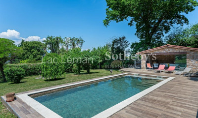 Niché au coeur du village pittoresque de Nernier, à seulement 4 minutes à pied du port et de la plage, cet élégant bien d'architecte de 230M² habitable et 320M² utile, se déploie sur une superbe parcelle close et paysagée de 2 275 m², sans vis-à-vis, offrant calme, intimité et une ambiance naturelle préservée. Dès l'entrée, le ton est donné : volumes généreux, lumière et raffinement. Le vaste hall d'accueil dessert un séjour lumineux avec cheminée, ouvert sur la terrasse et la piscine, une cuisine indépendante, une salle à manger conviviale, ainsi qu'un bureau séparé, idéal pour le télétravail ou une activité indépendante. À l'étage, l'espace nuit comprend quatre chambres, deux salles d'eau et une salle de bains, alliant confort et fonctionnalité pour toute la famille. Côté technique, la maison bénéficie d'un système de chauffage performant par pompe à chaleur, d'un chauffage au sol et d'une cheminée pour une atmosphère chaleureuse en toute saison. Les annexes incluent un garage double et une buanderie de 48 m². Les extérieurs, magnifiquement aménagés, invitent à la détente autour de la piscine et du jardin paysager. À seulement 25 minutes du centre de Genève et à quelques minutes d'Yvoire, cette propriété rare allie emplacement privilégié, prestations de qualité et cadre de vie exceptionnel. Honoraires à la charge du vendeur. Classe énergie C, Classe climat A Montant estimé des dépenses annuelles d'énergie pour un usage standard : entre 2710.00 euros et 3680.00 euros sur les années 2021, 2022 et 2023 (abonnements compris). Les informations sur les risques auxquels ce bien est exposé sont disponibles sur le site Géorisques : georisques.gouv.fr. Votre conseiller eXp Realty : Jérôme HERAULT Agent commercial (Entrepreneur individuel à responsabilité limitée) RSAC 894 976 315 THONONS-LES-BAINS