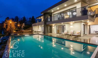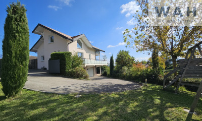 CAROLI Immobilier vous propose en exclusivité cette maison contemporaine de 110m2 du constructeur local DUNOYER, située dans un environnement champêtre à moins de 5 minutes de l'autoroute Annecy nord. Au rdc vous trouverez un salon/salle à manger élégant et chaleureux qui vous fera apprécier sa cuisine haut de gamme et ses aménagements soignés de standing. A l'étage vous serez séduit par ses 3 chambres lumineuses avec une très belle hauteur sous plafond dont deux suites sont composées chacunes d'une salle de bain avec baignoire, douche et wc, le tout complété d'un dressing indépendant totalement optimisé. En extérieur, le jardin paysagé vous offre une terrasse verdoyante avec un espace repas, son garage et ses 3 places de stationnement. Laissez vous séduire par cette maison aux prestations haut de gamme où vous n'aurez qu'à poser vos effets personnels et apprécier son environnement paisible. Pour tous renseignements et visite, contactez Cléa (Agent commercial inscrit au RSAC 988 534 400) par téléphone ou par mail sur