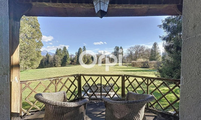 ANNECY SOTHEBY'S INTERNATIONAL REALTY vous propose cette superbe maison d'architecte de 263 m² (218 m² en loi Carrez) avec piscine, idéalement située à Reignier-Ésery, à proximité immédiate du golf,à 15 km de Genève sur un magnifique terrain paysager de 1 700 m² offrant une vue imprenable sur la chaîne du Mont-Blanc. Au rez-de-chaussée, vous découvrirez un vaste espace de vie baigné de lumière, comprenant un séjour-salon avec plafond cathédrale et cheminée, une cuisine ouverte, une véranda s'ouvrant sur une grande terrasse, ainsi qu'une cuisine d'été. Une chambre et une salle de bains complètent ce niveau. À l'étage supérieur, une mezzanine dessert une grande pièce pouvant faire office de chambre ou de bureau. Le premier niveau accueille trois chambres supplémentaires, une salle de bains ainsi qu'un vaste sous-sol comprenant une buanderie, un atelier, une authentique cave à vin, un cellier et une salle de sport. La propriété dispose également d'un garage double équipé d'une borne de recharge pour véhicule électrique, avec une mezzanine actuellement aménagée en atelier de peinture. Le chauffage est assuré par une pompe à chaleur, complétée par des panneaux photovoltaïques, garantissant confort et performance énergétique. ANNECY SOTHEBY'S INTERNATIONAL REALTY, votre expert dans la vente et la location de propriétés de luxe sur le bassin Annécien et les Aravis.