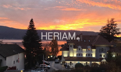 Veyrier du Lac, maison traditionnelle de 151 m² habitables sur un jardin de 1561 m², 4 chambres, 3 salles de bains, 2 minutes à pied du lac et des commodités, vue lac, sous-sol , garage 2 voitures, environnement calme, Rez de chaussée : hall d'entrée, salon salle à manger, une cuisine, un bureau ou chambre, salle d'eau, WC, garage double 1er étage : une chambre avec sa salle de bains WC, 2 chambres, un dressing, une salle de bains, WC Sous-sol : chaufferie, 2 caves, une buanderie/cave