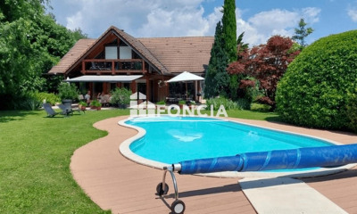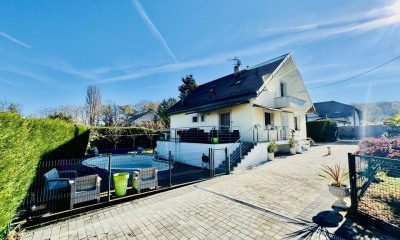 Cette villa se compose de deux logements indépendant sans vis à vis. La résidence principale de 167 m² : une pièce de vie 78 m² offrant une vue sur un paysage bucollique, 2 chambres, une mezzanine de 28 m², 2 SDB, 2 WC, un sous-sol de 105 m² (salle de gym avec SD, buanderie, chaufferie, cave à vin, double garage de 50 m²) Le second logement une extension de 2008 , une surface de 109 m² : pièce de vie 34 m², 3 chambres, 2 WC, 1 SDB, 1 balcon, 1 garage, jardin, cour. Cette configuration est l'idéal pour 2 familles recherchant l'intimité ou si vous souhaitez un revenu locatif. (à 1 500 euros/mois) Idéal pour les amoureux de la nature, randonnée à pied, deux pistes cyclables sont proches, (France/Suisse), quartier résidentiel avec un environnement arboré et calme, école primaire proche. Rare sur le marché ! Foncia transaction, S. Bonhomme au O7 77 93 94 12
