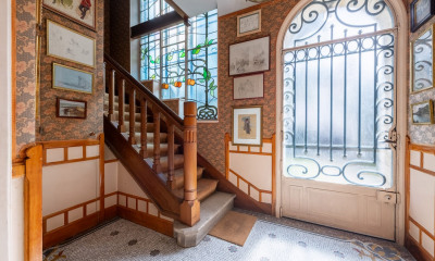 À Fontainebleau, une demeure de maître de 285 m² entièrement rénovée, sa terrasse et sa piscine, ouvertes sur un jardin paysager sans vis-à-vis. En retrait d'un boulevard bordé de hauts platanes, la demeure d'environ 286 m², typique de l'architecture bourgeoise et familiale bellifontaine, se dévoile discrètement derrière sa clôture et son portail métalliques, dans une petite cour gravillonnée où deux véhicules peuvent se garer. Elégamment parée d'un enduit blanc et de ferronneries sur les garde-corps et la rampe de l'escalier en pierre coiffé de sa marquise, elle se déploie d'un côté sur trois étages, dont un sous la toiture en pente de terre cuite, rythmée de trois lucarnes. La maison compte aussi un rez-de-jardin à l'arrière, accessible par un petit chemin qui descend vers un jardin paysager de 1200 m². Il est surplombé d'une vaste terrasse, extension récente du rez-de-chaussée sur toute la largeur de la maison. De là-haut, le regard ne rencontre que le bleu de la piscine ou le couvert végétal à l'horizon.