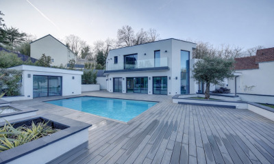 Superbe maison d'architecte de 2016 située à ORGEVAL dans un secteur calme et recherché. Sur un beau terrain paysagé de 1780 m² entièrement clos avec une piscine chauffée et sa cuisine d'été, une dépendance d'environ 45 m² pour une salle de sports ou un studio indépendant. Vous serez séduit par la disposition de ses volumes, par la qualité des matériaux et par sa luminosité. Le format de ses baies vitrées donne une impression d'extérieur à l'intérieur. Elle offre au rez-de-chaussée : une entrée, une pièce de vie de 54 m², une cuisine équipée de 18 m², une suite parentale avec salle de bains et dressing, un wc indépendant. A l'étage, un dégagement vous conduira vers 4 chambres, une salle de douche et un wc indépendant. Enfin, en rez-de-jardin, vous découvrirez une belle pièce de 33 m² s'ouvrant sur le jardin, pouvant servir de chambre d'amis ou de bureau ainsi qu'une pièce home cinéma de 26 m². Un couloir dessert : une salle de bains, un wc indépendant, un cellier, une buanderie et des rangements. Un garage fermé complète ce bien. Il se situe à environ 10 min à pied du centre d'ORGEVAL, qui vous accueille autour son clocher à découvrir ses commerces de proximité (primeur, boulangeries primées, boucherie de renom, superette, La Poste, coiffeurs, médecins et sa prochaine maison médicale ….) Les enfants y sont gardés et scolarisés grâce à ses crèches, ses groupes scolaires maternelles et primaires et une école Montessori. Ils profitent également de ses nombreuses associations sportives et de loisirs. Les bus desservent les collèges et lycées de St Germain en Laye, Chambourcy et Poissy. Accès rapide aux axes routiers A13/ A14. Bus Express A14 (La Défense) et Express 100 (St Quentin SQY). Liaison pour gares SNCF/RER A de Poissy (futur ligne RER E Eole)