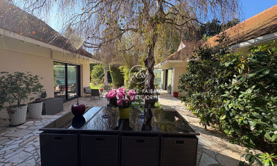Dans un village de charme avec accès forêt Domaniale de RAMBOUILLET à pied, toutes commodités et gare SNCF vers Paris Montparnasse à 10 minutes pour cette vaste propriété en pierres et toit de chaume sur un terrain d'environ 4 320 m² avec piscine sans vis à vis. Elle comprend une entrée, un séjour d'environ 63 m² en partie sous charpente avec cheminée en pierres, une salle à manger d'environ 40 m², une cuisine, 3 chambres, 1 bureau, 2 salles de douche. Etage avec double accès comprenant une belle pièce palière, une mezzanine, 4 chambres, 2 salles de bains, un bureau et un dressing. Bel atelier d'artistes en dépendances. (4.00 % d'honoraires TTC à la charge de l'acquéreur.)