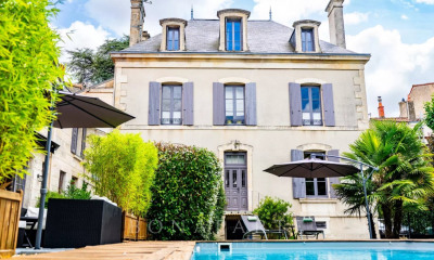 Située au coeur d'un village, à 20 minutes de NIORT, cette ravissante propriété dispose d'une maison poitevine de 366 m² habitables sur trois niveaux, d'une maison d'invités, d'un préau en pierre, et d'un garage. Le parc de 4500 m², joliment arboré, offre une piscine 12x6m. A l'entrée de la propriété, une grille automatique ouvre sur une cour gravillonnée et un parc magnifiquement entretenus. La maison principale, en parfait état, offre au rez-de-chaussée un vestibule traversant de 23 m² sur sol travertin, un salon de 37 m² avec cheminée sur parquet (HSP : 2,80m), une cuisine de 24,80 m², une salle à manger de 23,20 m² sur parquet, un espace bureau et des toilettes, et une lingerie. Un escalier en pierre permet d'accéder aux étages. Au premier étage, le palier sur parquet flottant donne accès à trois chambres sur parquet (37 m², 23,20 m² et 24,80 m²) et une salle de bains. Au deuxième étage, le palier donne accès à deux grandes chambres, l'une de 37 m² sur parquet, et l'autre de 48 m² (moquette sur parquet) qui pourrait être aménagée en loft. Ce niveau est complété par une salle de bains et un local rangement. La maison est reliée au tout à l'égout. Elle dispose d'un chauffage central au fuel (chaudière Brotje de 2008 et 3 cuves à fuel de 1000L chacune, conso. 3000L par an). Elle est dotée d'ouvertures en double vitrage, d'une alarme, et d'un adoucisseur d'eau. Elle est orientée nord-est/sud-ouest. Un beau garage avec deux portes cochères est accolé à la maison. Au-dessus de ce garage, une pièce avec deux fenêtres reste à aménager. Dans l'ancienne écurie, la maison d'invités de 100 m² avec sol en pierre, dispose d'un étage qui n'a pas encore été aménagé. Elle est prolongée par un préau qui donne sur la piscine. LA PISCINE est de belle taille (dimensions : 12m x 6m ; profondeur de 1,20 à 2,20m). Elle dispose d'un volet roulant électrique aux normes. Traitement au sel. Le village dispose d'une épicerie de proximité, et d'un médecin. Il est à 5 minutes d'une pharmacie, et proche des écoles et collège. L'accès à l'autoroute et la gare TGV se trouvent à Niort, à 20 minutes. Cette dernière relie PARIS MONTPARNASSE en moins de 2h. L'endroit est sans nuisances. Prix de vente honoraires inclus : 636.000 euros. Honoraires charge acquéreur. Honoraires : 6 % TTC du prix hors honoraires. Prix de vente hors honoraires : 600.000 euros. Classe énergie : D. Classe climat : D. Montant estimé des dépenses annuelles d'énergie pour un usage standard : entre 7.130 et 9.710 euros par an. Prix indexés sur 2021, 2022 et 2023. Les informations sur les risques auxquels ce bien est exposé sont disponibles sur le site Géorisques :