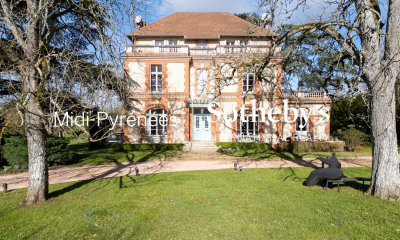 En région Occitanie, entre Toulouse et Montauban, une maison, son cabinet, son appartement, sa piscine et son jardin de 5 000 m². Le logis principal est établi au centre du jardin arboré qui comporte des alcôves de buissons et de fleurs. Il est composé d'un grand bâtiment divisé en trois espaces : le cabinet qui accueille une activité libérale, la maison d'habitation d'une superficie de quelque 300 m² et un appartement indépendant. Deux vantaux en fer de couleur claire, montés sur des piliers en briques rouges eux-mêmes surmontés d'une arche naturelle formée par des ormes, débouchent sur une large allée gravillonnée à la forme courbe qui révèle successivement le cabinet puis la maison au style méditerranéen. Les volets bleu lavande, les toits tuilés et le crépi couleur sable composent une palette douce, presque provençale, renforcée par la présence d'un ciel mouvant et de la nature en bordure. Au-delà, la vue porte au loin sur la campagne adjacente.