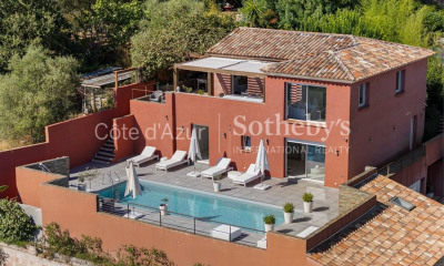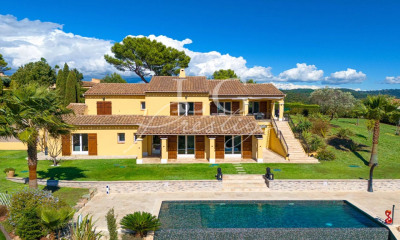 Située dans un environnement résidentiel prisé à seulement quelques minutes à pied du village, cette propriété offre un cadre de vie exceptionnel avec une vue panoramique sur le massif de l’Estérel et la mer. Établie sur un terrain parfaitement aménagé, cette villa lumineuse séduit par ses volumes généreux et ses prestations de qualité. Le niveau principal accueille un vaste espace de vie baigné de lumière, ouvert par de larges baies vitrées sur une grande terrasse exposée sud-est et une vue spectaculaire. La cuisine indépendante, spacieuse et fonctionnelle, bénéficie également d’un accès direct à la terrasse. Vous trouverez également une chambre parentale donnant sur l’extérieur, avec dressing et une salle de bains attenante. Au niveau de la piscine, la villa dispose de trois belles chambres, d’une salle d’eau avec double douche, d’une vaste salle de jeux d’environ 30m², ainsi que d’un accès direct au garage et à un bel espace de rangement. À l’extérieur, la piscine de forme libre est bordée de larges terrasses ensoleillées ainsi que d’une terrasse couverte, offrant des espaces idéaux pour la détente et la convivialité. Le terrain, soigneusement aménagé, comprend également un terrain de pétanque et un espace polyvalent d’environ 12x9m, parfait pour le volley, le badminton ou d’autres activités sportives. La propriété bénéficie d'une capacité de stationnement confortable pouvant accueillir jusqu’à 6 véhicules. Honoraires à charge vendeurs inclus dans le prix. Les informations sur les risques auxquels ce bien est exposé sont disponibles sur le site Géorisques : georisques.gouv.fr. EHUFEN3727