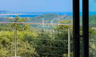 Érigée sur un terrain paysager de plus de 1 980 m², au sein d’un domaine privé prestigieux avec courts de tennis, cette superbe villa contemporaine de 237 m² séduira par ses volumes généreux, son confort moderne et sa vue imprenable sur les collines de l’Estérel. Atout rare : la villa bénéficie d’un accès au village à pied, permettant de profiter facilement des commerces et de la vie locale tout en étant dans un environnement calme et privilégié. Rez-de-jardin Un vaste espace de vie lumineux de plus de 90 m2, exposé plein sud, vous accueille avec un salon/salle à manger ouvert sur l’extérieur et une cuisine américaine élégamment aménagée et équipée. Cet espace mène directement à une terrasse ombragée et à une somptueuse piscine à débordement offrant une vue dégagée sur la nature environnante. Sur le même niveau, une magnifique suite parentale de 56 m² a été aménagée : • Chambre spacieuse avec accès direct à l’extérieur, • Coin bureau, • Beau dressing, • Salle de bain attenante. Un véritable cocon pensé pour le confort et l’intimité. Étage À l’étage, l’espace nuit propose : • Une suite parentale de 28 m² avec grand placard intégré et salle d’eau avec WC, • Deux chambres généreuses de 18 m² et 21 m², • Une salle de bain familiale de 10 m² avec WC. Atouts de la propriété • Accès au village à pied, • Terrain facile d’entretien, • Nombreuses places de stationnement, • Garage carrelé de 25 m² équipé en eau et électricité, • Terrain de pétanque, • Climatisation gainable, • Secteur calme et recherché. Informations pratiques • Aucun travaux à prévoir, • Classe Énergie : A (indice 58), • Classe Climat : A (indice 1). • Adoucisseur d eau • Aspiration centralisée Une propriété rare, alliant élégance contemporaine, volumes généreux, prestations haut de gamme et proximité immédiate du village. Coup de cœur assuré !