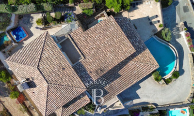 À quelques minutes du centre de Bandol, cette villa contemporaine de 195 m² (185 m² Carrez) dévoile une signature architecturale rare, où la lumière, le calme et le raffinement composent un art de vivre résolument méditerranéen. Implantée sur un terrain paysager de 1 260 m², elle séduit dès les premiers pas par ses lignes sobres et son atmosphère apaisante. Les volumes sont harmonieux, les matériaux choisis avec exigence, et chaque espace reflète une volonté claire : offrir un quotidien élégant, fluide et confortable. La pièce de vie d’environ 70 m² s’ouvre généreusement sur l’extérieur. Entre salon, salle à manger et cuisine ouverte aux accents contemporains, l’ensemble baigne dans une lumière traversante et raconte une maison pensée pour partager, recevoir, savourer. Le rez-de-chaussée accueille une somptueuse suite parentale avec salle d’eau et WC, ainsi que deux chambres, chacune dotée de sa salle d’eau privative. À l’étage, une salle de bain, une troisième chambre et une quatrième chambre complètent ce cocon familial. À l’extérieur, le jardin paysager révèle un espace de détente d’un rare standing : piscine miroir 15 × 5 m, spa de 20 m², vaste pool house de 60 m² et double garage de 45 m² Un ensemble parfaitement intégré à son environnement, préservant une intimité totale et une ambiance végétale apaisante. L'installation de panneaux solaires vient enrichir le lieu d’une dimension durable et performante, sans jamais compromettre l’esthétique.
