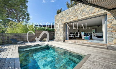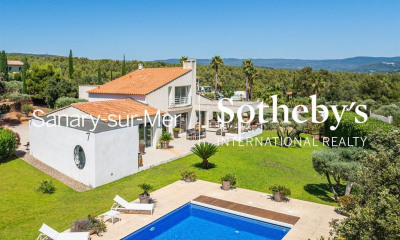 À vendre, villa contemporaine d'exception avec vue mer et prestations haut de gamme à La Cadière-d'Azur. À seulement 8 minutes des plages de Saint-Cyr-sur-Mer et du Golf Dolce Frégate, cette superbe propriété contemporaine construite en 2021 offre 320 m² habitables sur un terrain paysager de 3 000 m², au calme absolu, dans un quartier résidentiel prisé dominant les vignes environnantes. Élégante et lumineuse, la villa séduit par ses volumes généreux, sa vue mer dégagée et ses prestations d'exception : grande piscine à débordement, mini-golf, salle de sport, oliveraie et garage fermé de 200 m². Le rez-de-chaussée s'articule autour d'un séjour de 100 m² baigné de lumière, prolongé par une cuisine américaine équipée ouvrant sur une vaste terrasse et une piscine à débordement de 15,5 x 5 m. Ce niveau comprend également une suite parentale avec salle d'eau, trois chambres, un bureau, une salle de bain et un cellier. En rez-de-jardin, un second plateau à entrée indépendante offre un espace de vie complet avec séjour et cuisine équipée donnant sur une terrasse à la vue dégagée, trois chambres supplémentaires, une salle d'eau et une buanderie. Les passionnés d'automobile apprécieront le garage exceptionnel de 200 m² avec atelier et salle d'eau, pensé pour accueillir une collection de véhicules. Le canal de Provence, une oliveraie, un double carport, un mini practice de golf et une salle de sport viennent parfaire ce bien rare, alliant confort, élégance et art de vivre méditerranéen.