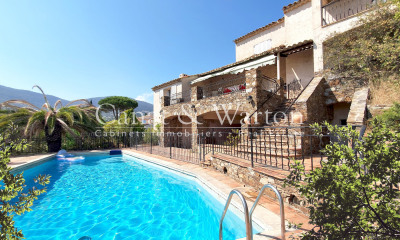Située dans le domaine résidentiel de l'Eau Blanche, cette villa de charme de 170 m² environ, est implantée sur un terrain de 2 200 m² offrant un cadre paisible et verdoyant. Au rez-de-chaussée, une entrée, un wc invité, un grand séjour-salle à manger avec belle hauteur sous plafond et poutres apparentes, ainsi qu'une cuisine entièrement équipée, le tout ouvert sur de spacieuses et diverses terrasses avec vue mer profitant d'espace repas et détente. Deux belles chambres et une salle de bains complètent ce niveau. Au rez-de-jardin, deux chambres supplémentaires et une salle de douche. Garage avec buanderie et cave complètent ce bien. Très belle villa de charme, avec belle piscine traditionnelle, offrant un extérieur entourée de magnifiques sujets méditerranéens. Prix : 1860000.0 euros, Net vendeur : 1790000.0 euros , Honoraires charge acquéreur : 4.0 %TTC. Bien proposé par Solenne PETRE EI, agent commercial (RSAC 841720436)
