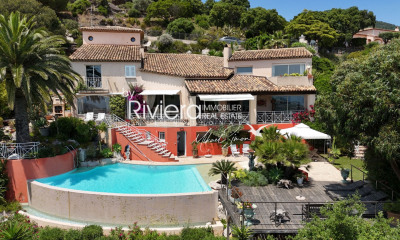 EXCLUSIVITE RIVIERA IMMOBILIER - Propriété à vendre à CAVALAIRE - Superbe vue Mer Panoramique et piscine à débordement pour cette Propriété de 241m² habitables édifiée sur un terrain de 1667m² .. Elle vous accueille avec une entrée et vaste mezzanine de 27m² avec cheminée, une superbe pièce de vie salon avec cheminée / salle -à-manger de plus de 84m² (dont une loggia de 29m² avec une troisième cheminée), le tout disposant d'un superbe panorama sur la Baie, depuis le Cap Lardier jusqu'au Port illuminé de Cavalaire.. 4 chambres face à la mer avec placards, 2 salles de bain, 3 salles de douche, 5 Wc, Vaste bureau face au port..Cuisine, arrière cuisine, cellier, cave à vin.. de vastes terrasses prolongent les pièces de vie vers la très belle piscine à débordement aux formes libres.. Le jardin est soigneusement travaillé en jardin paysager d'essences méditerranéennes et richement constitué d'ouvrages en pierres de Bormes, tels que les voies, murs, restanques, jardinières et escaliers.. Garage double, nombreuses places de stationnement, deux accès, deux portails.. ETAT IMPECCABLE ! UNE DES PLUS BELLE VUE MER de CAVALAIRE ! Les informations sur les risques auxquels ce bien est exposé sont disponibles sur le site Géorisques :