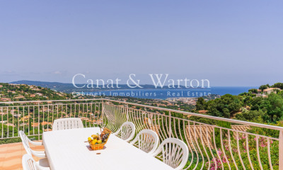 RIVIERA IMMOBILIER vous présente cette propriété à vendre à CAVALAIRE, Superbe propriété d'environ 250m² édifiée sur un terrain paysager de 1631m² bénéficiant d'une magnifique vue mer ! Elle offre au rez-de-chaussée une mezzanine d'entrée avec vue plongeante sur le salon/salle à manger, 1 chambre Master climatisée avec salle de bains/wc donnant sur terrasse, 1 chambre avec grande hauteur sous plafond avec balcon et vue Mer, 1 petite chambre, salle de douche. Un bel appartement de 2 pièces indépendant avec salon/cuisine, 1 chambre, salle de douche, wc en étage supérieur, le tout avec terrasse et vue Mer ! Le niveau principal quant à lui se compose d'un vaste salon/salle à manger avec cheminée et très grande hauteur sous plafond et cuisine américaine, de très belles terrasses couvertes face à la mer, une salle à manger entièrement vitrée et climatisée avec accès sur l'extérieur avec barbecue 1 chambre avec salle de douche/wc et terrasse, 1 bureau, buanderie, cellier, cave … En contre-bas, au niveau de la piscine, vous bénéficierez d'une chambre indépendante supplémentaire avec salle de douche et wc…Son extérieur dispose d'une piscine à débordement (chauffée par PAC), d'une terrasse suspendue en bois exotique, le tout face à la mer ! Chalet en aval du terrain et d'un terrain de pétanque ! Jardin entièrement paysager avec de nombreuses variétés méditerranéennes et d'un système d'éclairage de tout le jardin ! Les informations sur les risques auxquels ce bien est exposé sont disponibles sur le site Georisques :