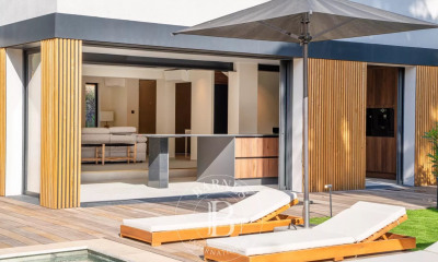 Rare- Gigaro- Propriété pieds dans l'eau avec accès privatif aux criques les plus intimistes et les plus turquoises du Golfe de St Tropez. Sise sur un beau terrain plutôt plat de 1890 m2, cette propriété des années 70, d'une surface habitable de 187m2, propose une belle base architecturale contemporaine pour une future rénovation ou un futur projet. Elle se compose: au RDC: d'un séjour-salle à manger, grande cuisine séparée, puis 1 chambre en suite avec salle de douche, 1 petite chambre, 1 WC, 1 salle de douche et une 3eme chambre avec douche. A l'étage, 1 chambre avec point d'eau et terrasse privative offrant une magnifique vue mer, puis une chambre parentale avec une 2ème petite chambre (enfant ou dressing) et 1 salle de bain, puis une 3ème chambre avec salle de bain. Bel espace autour d'une grande piscine traditionnelle de 11m x 5 m 1 garage et 3 à 4 places de parking pour voitures dans la propriété. Propriété située dans un domaine privé, à l'abri des regards et au calme absolu. Prix : 6990000.0 euros, Net vendeur : 6721000.0 euros , Honoraires charge acquéreur : 4.0 %TTC. Bien proposé par Solenne PETRE EI, agent commercial (RSAC 841720436)