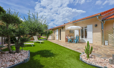 Au calme, dans un domaine résidentiel, proche du village et de la plage, cette charmante villa provençale vous fait profiter d'une magnifique vue sur les îles et les vignes en plus de son exposition Sud-Ouest. Une grande terrasse entoure la partie principale en rez-de-jardin, composée d'un séjour avec cheminée, une salle à manger avec cheminée, une grande cuisine séparée, une chambre avec salle de bain complète, une chambre avec salle de douche et wc donnant sur la terrasse et une salle de douche avec wc. Au niveau inférieur, en rez-de-chaussée, se trouvent deux chambres, une salle de douche avec wc et une pièce de vie avec cuisine. Une belle piscine et ses plages vous acceuillent dans un cadre aboré. Buanderie et cave. Abri voitures et stationnement dans la propriété.