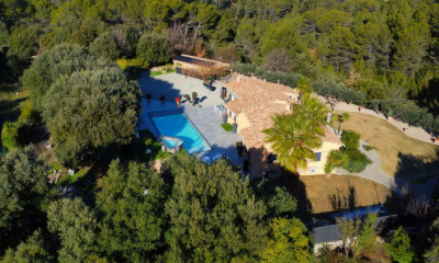 FIGANIERES, Sur les hauteurs, au cœur de la campagne, dans un lieu idyllique, paisible et calme, une Magnifique propriété de plus de 2,9 hectares. La villa principale de 160m² est composée d'une entrée avec vestiaire, un premier coin nuit disposant de deux chambres et d'une très grande salle de bains avec douche et baignoire, un coin de vie disposant d'une salle à manger, un vaste séjour avec cheminée insert, un bureau ainsi qu'une cuisine. Cette villa offre une vue magnifique sur les maures et la mer. A l'étage vous trouverez une suite parentale avec salle d'eau - WC et dressing, ainsi qu'un solarium permettant de profiter de la vue. La propriété comprend un studio d'amis de 60m² complètement indépendant, ainsi que deux garages, une cave. Le tout sur un très beau terrain de 2h9 hectares en restanques avec de beaux murs en pierre, des oliviers, ainsi qu'une ruine. La villa dispose d'un coin piscine 9x4 avec pool house afin de profiter des longues journées d'été. PRODUIT RARE !
