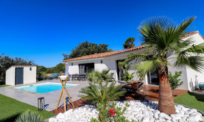 EN EXCLUSIVITE SOGIP. FLAYOSC. Proche centre village, villa de 120m² environ avec 4 chambres, garage, piscine et pool house sur terrain plat et clos de plus de 2500m². La villa sur 2 niveaux est composée au rez de chaussée : une entrée, wc, bel espace séjour et salle à manger de 40m², une cuisine aménagée de 15m², une chambre avec salle d'eau de 18m², une véranda de 12m² et terrasse. A l'étage : dégagement, 3 chambres avec placards de 12.12 et 10 m², salle de bains de 7m², wc. Garage de 26m². Magnifique terrain paysager, plat et clos de 2600m² avec bel espace parking et portail automatique. Piscine 9.5*4 avec pool house aménagé avec douche et wc à l'abri des regards. Fosse septique aux normes. Très proche du centre et des commodités à pied, la villa est située dans un quartier très calme et résidentiel sans nuisances. Etat impeccable, aucun travaux à prévoir, une belle opportunité à ne pas manquer ! SOGIP , l'agence historique du village depuis 40 ans, Caroline et Bruno à votre écoute !