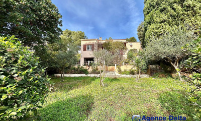 Entre le Pradet et le cap Brun, au calme à 500 m de la mer, un mas du 19e s. avec maison d'amis, jardin constructible de 4 000 m², piscine et tennis. De vieux piliers en pierre, de chaque coté du portail, reliés par un petit toit à deux pans en tuiles canal et desservant une allée gravillonnée, laissent présager une propriété ancienne. En outre, un portillon, implanté quelques dizaines de mètres plus haut, assure un accès piétons indépendant de celui des voitures. Le garage et la maison d'amis se situent près du portail, puis le mas se dévoile avec sa piscine et son tennis au sud. Le bâtiment d'habitation principal, orienté au midi, est formé dans sa partie occidentale d'une construction du 19e s. élevée d'un étage sur rez-de-jardin et percée de quatre baies par niveau ; l'une d'elles, pleine d'une porte-fenêtre, donne sur une terrasse revêtue de carreaux en terre cuite, qui ménage une transition entre le logis et le jardin. Les façades, bâties en pierre, sont enduites de blanc, sauf au niveau du soubassement, et des plus sobres. Les baies sont droites et régulières, avec appuis de fenêtre couverts de terre cuite et contrevents en bois peints en vert. La toiture, en tuiles canal, est à deux pans et bordée d'une génoise à deux rangs. Côté oriental, une autre partie, accolée à la portion 19e s., ajoutée au 20e s. et limitée au rez-de-jardin, profite de la lumière naturelle par deux fenêtres et une porte-fenêtre, et abrite une chambre. La toiture de cette partie est à trois pans de tuiles. Côté nord, se trouvent des dépendances, proches d'un puits entouré de pierres, et une véranda, qui devance l'essentiel de la façade en rez-de-jardin. Enfin, le parc, clos de murs ou de grillages, est enherbé et planté d'arbres centenaires et de fruitiers, qui mêlent toutes les espèces endémiques de la région.