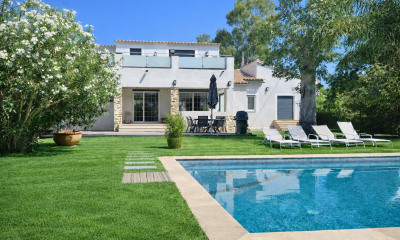 Idéalement située à seulement 10 minutes à pied de la célèbre plage de Pampelonne, cette splendide villa moderne neuve offre des prestations luxueuses et bénéficie d'une vue imprenable sur la mer. Nichée au cœur d'une résidence fermée et très résidentielle, cette propriété moderne se distingue par ses volumes généreux, s'étendant sur une surface d'environ 500 m2. Elle se compose notamment de vastes pièces de vie qui s'ouvrent sur de grandes terrasses offrant un panorama complètement ouvert sur la mer et la nature. Elle comprend également 6 grandes suites et 2 chambres pour le personnel. Conçue comme un havre de détente, la propriété propose une véritable salle de cinéma, une grande salle de sport ainsi qu'un espace bien-être avec sauna et jacuzzi. Le terrain s'étendant sur 3465 m2 a été aménagé avec soin, et profite d'une piscine miroir chauffée ainsi que de magnifiques essences méditerranéennes soigneusement choisies pour créer une atmosphère naturelle et reposante. Un superbe pool-house entièrement équipé vient compléter cet espace extérieur. La propriété dispose d'un grand parking et de grands garages, ainsi que de tout le confort technique: domotique, climatisation réversible, chauffage au sol, alarme, grande buanderie,.. Cette propriété d'exception possède de nombreux atouts et saura séduire les plus exigeants. Le choix de matériaux nobles tels que notamment le verre, la pierre naturelle, le bois de chêne, le marbre et la mosaïque, sublime cette belle réalisation architecturale, ajoutant une touche d'élégance. Un véritable bijou architectural bénéficiant d'un emplacement très prisé, à quelques centaines de mètres de la plage de Pampelonne.