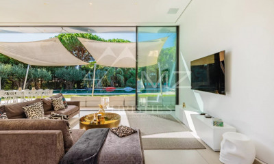 Située en position dominante dans la campagne de Ramatuelle, dans un environnement calme et sans vis-à-vis, venez découvrir à la vente cette magnifique villa provençale de charme. Bénéficiant d'un emplacement privilégié dans le secteur prisé de l'Oumède, à proximité des plages de Pampelonne, cette propriété d'exception édifiée sur plus d'un hectare de terrain, jouit d'une splendide vue panoramique et dégagée sur les vignes jusqu'à la mer. La propriété comprend une spacieuse villa de 325m2 ainsi qu'une maison de gardien. L'habitation principale se compose d'un hall d'entrée, d'un spacieux séjour/ salle à manger avec cheminée baigné de lumière et d'une cuisine moderne séparée tout équipée, le tout ouvert sur une grande terrasse couverte offrant une vue dominante spectaculaire sur les vignes et la mer au loin. Côté nuit, cette demeure vous propose 6 chambres en suite, dont 3 avec accès direct à la terrasse donnant sur la piscine. La maison annexe comporte quant à elle un séjour/ salle à manger, une cuisine ouverte, une chambre avec salle d'eau, une jolie terrasse agrémentée de glycines et un abri voiture. Elle est idéale comme maison de gardien ou d'invités et assure intimité et indépendance. Vous pouvez profiter des nombreuses terrasses ombragées, d'une piscine, d'un jacuzzi, d'un bassin dédié aux enfants et d'un garage, le tout au sein d'une forêt de pins parasols sur un parc de plus d'un hectare. L'espace piscine comprend un pool house doté d'un bar, d'une salle d'eau et d'une douche extérieure pour profiter des longues journées d'été. Entre vue exceptionnelle, situation privilégiée, confort et charme provençale, cette demeure représente une opportunité unique pour profiter des plaisirs de la vie méditerranéenne à proximité immédiate du village de Saint-Tropez. Propriété à vendre par l'agence immobilière de Saint-Tropez / Ramatuelle. Grâce à notre partenariat exclusif avec Knight Frank, leader mondial de l'immobilier de prestige, Janssens Immobilier offre à chaque propriété une visibilité internationale exceptionnelle. Cette alliance renforce notre expertise locale par la puissance d'un réseau présent dans plus de 50 pays. Les informations sur les risques auxquels ce bien est exposé sont disponibles sur le site Géorisques : Conformément à la réglementation en vigueur, la surface DPE de ce bien est établie sur la base d'un mesurage normé de la surface habitable. Ce mesurage peut différer de la surface totale mesurée avec précision par nos équipes commerciales.