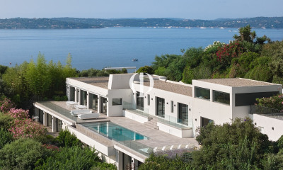Comment ne pas s'exclamer devant une propriété aussi prestigieuse bénéficiant d'une telle vue sur mer ? L'exception est au rendez-vous dans le moindre espace de cette maison de 295m² érigée sur un terrain de 1200m². Idéalement située à seulement quelques minutes à pied des plages, elle bénéficie d'un emplacement privilégié. Dès le portail franchi vous serez séduits par une très élégante allée ornée d'une végétation laissant deviner l'ambiance raffinée de l'ensemble de la propriété. L'espace de vie, jour et nuit, est aménagé de plain pied. La spacieuse entrée vous laissera découvrir une magnifique pièce de réception de 70m² donnant le privilège d'une vue exceptionnelle sur mer. Cet espace particulièrement lumineux car traversant et bordé de larges baies vitrées, permet de profiter d'une magnifique terrasse avec piscine à débordement et d'un charmant patio. L'esprit "dedans/dehors" prend alors tout son sens. En lien avec cette pièce, vous profiterez d'une très spacieuse cuisine avec espace dinatoire. De là, vous pourrez bénéficier d'un accès à une seconde terrasse protégée donnant ainsi à l'ensmble un esprit de cuisine d'été. Une arrière cuisine tient lieu d'office et buanderie. La partie nuit, de plain pied également, n'est pas en reste dans le raffinement et propose une Master Suite avec accès direct à l'extérieur et toujours la vue imprenable sur la méditerranée. Deux autres chambres équipées en Suites, bénéficiant chacune d'une salle d'eau privative vous sont proposées. Les suprises ne s'arrêtent pas là, car en niveau inférieur, vous entrerez dans un autre univers, mais tout aussi raffiné. Tout d'abord un bureau et un très large dressing, l'ensemble pouvant être aménagé en Suite. Puis vient l'espace étonnant avec une magnifique salle de jeux aménagée avec un bar équipé. Pour compléter cet espace détente, une très élégante cave à vins. Un autre espace contigu et d'une surface de 70m² est prêt à être aménagé. Garage double, terrain de pétanque complètent cette fabuleuse propriété. Un lieu rare de raffinement, de bien être et de confort à découvrir sans tarder !! Un ambiance incroyable de jour comme de nuit vous attendent pour profiter de moments d'exception dans un cadre unique.