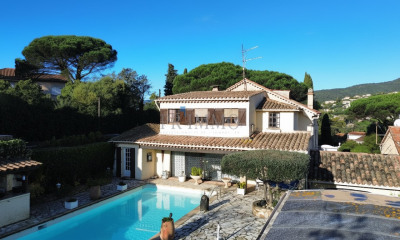 Vente villa Sainte-Maxime. Dans un domaine calme et sécurisée, à proximité des plages de la Nartelle, superbe villa d'env 170 m² avec une magnifique vue mer édifiée sur une parcelle de 1717 m². Elle comprend : Hall d'entrée, wc invités, vaste séjour cheminée, salle à manger ouvrant sur terrasse couverte, cuisine us équipée 2 chambres, salle d'eau et wc séparé. A l'étage : 2 chambres dont une avec salle de bains, salle d'eau et wc séparé. Sous-sol total avec garage. Une piscine agrémente le jardin joliment arboré.