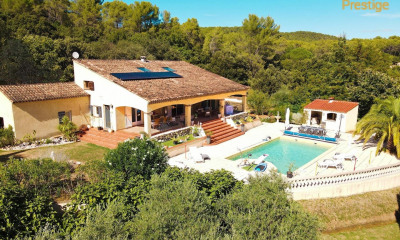 Au coeur de la provence, découvrez cette magnifique bastide au charme authentique, offrant un cadre de vie unique et des prestations de qualité. Dès l'arrivée, un vaste espace de stationnement avec carport et grille en fer forgé annonce l'élégance des lieux. La propriété propose plusieurs espaces nuit indépendants, dont une suite privé avec chambre, salle d'eau et wc, ainsi que deux chambres supplémentaires avec salle d'eau et wc séparé, idéales pour reçevoir famille et amis. Un majestueux escalier mène à une superbe pièce de vie aux volumes exceptionnels, sublimée par une hauteur sous plafond remarquable. Les superbes voûtes en pierre dévoilent tour à tour une chaleureuse salle à manger et une cuisine rustique de caractère, toutes deux ouvertes sur de larges terrasses baignées de soleil. L'espace nuit principal propose une suite avec salle d'eau et wc, ainsi que deux chambres indépendantes, complétées par une salle de bains avec baignoire, un wc indépendant et un lave-mains. Une chaufferie et une buanderie généreuse viennent parfaire la fonctionnalité de la maison. A l'extérieur, la magie provençale prend tout son sens: une vaste piscine chauffée s'offre face à une vue panoramique imprenable, tandis qu'un élégant pool house entièrement vitré en fer forgé permet de prolonger les instants de détentre en toute saison. Un véritable havre de paix, mariant authenticité, raffinement et confort moderne, dans un cadre nature d'exception. Les prestations incluent un portail électrique, un système d'arrosage automatique, un éclairage extérieur et le tout à l'égout, un atelier. Cerise sur le gâteau : possibilité supplémentaire d'acquérir un terrain constructible de 1000 m2 attenant vient enrichir le potentiel de cette propriété rare. Contactez votre conseiller Endie Immobilier : Cécile PELLETIER - EI - Agent commercial indépendant Ville du greffe : DRAGUIGNAN RSAC N° 434 861 738 - Le barème de nos honoraires est disponible (réf. 830323988) (Les informations sur les risques auxquels ce bien est exposé sont disponibles sur le site Géorisques : ) Contactez votre conseiller Endie Immobilier : Cécile PELLETIER - EI - Agent commercial indépendant Ville du greffe : DRAGUIGNAN RSAC N° 434 861 738 - Le barème de nos honoraires est disponible (réf. 830323988) (Les informations sur les risques auxquels ce bien est exposé sont disponibles sur le site Géorisques : )