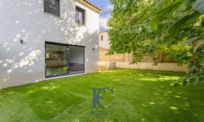 Dans les hauteurs boisées de Sanary-sur-Mer, avec vue sur la Méditerranée, une demeure aux lignes contemporaines, son parc d'un hectare et sa piscine à débordement. Le terrain, d'une surface de plus d'1 ha, adopte la forme d'un trapèze et suit le relief naturel de la colline sous forme de restanques. L'accès s'effectue par la partie basse, tandis que la maison et la piscine se trouvent sensiblement à mi-hauteur. Les zones inférieure et supérieure de la propriété demeurent boisées, conformément aux prescriptions d'urbanisme. Le plateau central, en revanche, a fait l'objet d'un aménagement paysager soigné et harmonieux. La propriété se compose de trois volumes distincts. À l'ouest, un grand studio et un garage couvert jouxtent une aire de stationnement pour plusieurs véhicules. Au centre, la maison a été construite en 2000. Elle présente une architecture aux toitures à deux ou quatre pans en tuiles canal, ponctuées de triples génoises. La façade, d'un ton rose méditerranéen, se pare de baies vitrées cintrées à petits carreaux, dont les encadrements maçonnés peints en blanc renforcent le caractère méridional. Deux balcons rythment la partie est, avec leurs rampes en fer forgé blanc, identiques à celles de la terrasse. À l'intérieur, une vaste pièce de réception d'environ 120 m² donne sur une grande terrasse partiellement couverte, avec deux grandes baies vitrées à galandage. À l'étage, la chambre principale précède une terrasse tropézienne. À l'est, une troisième construction plus modeste est reliée à la maison principale par un couloir avec une seconde porte d'entrée. S'y trouvent trois chambres à l'étage, chacune avec sanitaires, au-dessus d'un vaste espace qui sert de pool-house, aménageable en sixième chambre au besoin. La piscine à débordement, de 10 x 5 m, s'étire à l'est de la terrasse, bordée de plages en bois et ceinte d'une élégante balustrade.
