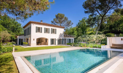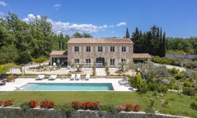 Bastide en pierre récente avec vue panoramique à Tourrettes, proche Domaine de Terre Blanche Construite en 2019, cette bastide en pierre de 327 m² s'élève sur un terrain paysager de 7 682 m² en position dominante, offrant une vue dégagée sur les collines et le village de Tourrettes. Elle comprend au rez-de-chaussée un hall d'entrée, toilette invités, vestiaire, une grande cuisine familiale avec terrasse couverte, un séjour lumineux de 110 m² avec cheminée, et un bureau avec bibliothèque et cheminée. À l'étage, quatre chambres d'amis avec salles d'eau privatives et dressings, ainsi qu'une suite parentale de 42 m² avec dressing, baignoire et douche. Le sous-sol dispose d'une salle de fitness, d'une cave à vin et d'une buanderie. L'extérieur propose une piscine chauffée de 15 x 5 m, un double abri voitures et une aire de stationnement. Située à 10 minutes du Golf de Terre Blanche et 50 minutes de l'aéroport international, cette bastide bénéficie d'un cadre calme et privilégié. Cette propriété est proposée par Côte d'Azur Sotheby's International Realty, expert en immobilier de prestige sur la Côte d'Azur. Contactez-nous pour plus d'informations ou une visite.