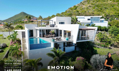 BIENS EXCEPTIONNEL PAR SON POTENTIEL – A RENOVER. Grande propriété bâtie, impossible à reconstruire de nos jours, comprenant une maison d'habitation principale, sur quatre niveaux et une grande piscine. Au 1er niveau, un apt. de 2 chambres, un salon et une cuisine. Au 2nd niveau, 2 séjours duplex équipés chacun d'une kitchenette, salles d'eau et dressing. Le duplex sud-est comporte une terrasse couverte, des locaux techniques et un escalier. Au 3ème niveau, 3 chambres avec salles d'eau chacune et dressing. Deux des trois chambres sont équipées de kitchenettes auxquels s'ajoutent les deux chambres des duplex et le garage. Et au 4è niveau, une cuisine, un salon, une grande chambre avec dressing et salle d'eau. A ce niveau se trouve une piscine et un carbet avec toit-terrasse. Une seconde maison de plain-pied composée d'une entrée, une cuisine salon, une desserte arrière-cuisine, une arrière-cuisine, deux chambres avec salle de bains, un dressing, une terrasse couverte et une terrasse non couverte. Le tout érigé sur une parcelle pentue de 10 000 m² avec une vue exceptionnelle et un accès privilégié et direct au lagon de Simpson Bay.