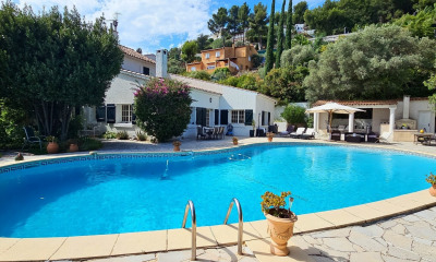 RARE A LA VENTE - A LA VALETTE DU VAR, Le Fuméou, vue mer pour cette propriété au calme, nichée dans un écrin de pins et d'oliviers, de type T8 de 183 m², comprenant au rez-de-chaussée : hall d'entrée desservant séjour avec cheminée et salon donnant sur terrasse et jardin, cuisine fermée, salle à manger ouvrant sur patio, 2 chambres, salle de bain, salle d'eau et WC ; à l'étage, lumineuse bibliothèque de 25 m² avec cheminée et terrasse tropézienne, 2 chambres, salles d'eau et WC, sur un terrain en restanques de 7825 m² avec piscine, dépendances et parkings. Contact : Isabelle DUFOREST-JANIN - Le CABINET 3000 - Agence immobilière au Mourillon vous accompagne dans votre recherche d'appartement à acheter de Toulon Ouest à Toulon Est (Ollioules, Valbertrand, Valbourdin, Claret, Sainte Anne, Les Lices, Centre-Ville, Siblas, La Loubière, Faron, Aguillon, Serinette, Ameniers, La Barre, La Palasse, La Barentine, Petit Bois, Lamalgue, Cap Brun, Pont de Suve, Sainte Musse, Le Pradet, La Garde, La Valette..)