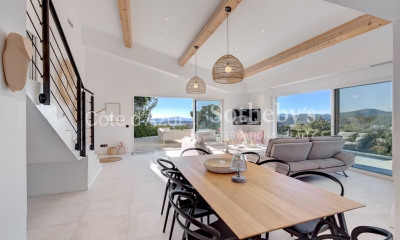 Les Issambres, située dans un quartier résidentiel calme et prisé, cette villa contemporaine offre une vue mer panoramique. De plain-pied, elle dispose de deux chambres, d'une salle de bains, d'un dressing et d'une terrasse. Au rez-de-chaussée, vous trouverez une chambre avec salle de bains et WC, ainsi qu'une suite parentale dotée d'une salle d'eau attenante et d'un bureau (ou chambre) en enfilade. Le séjour, avec de belles hauteurs sous plafond, s'ouvre sur deux terrasses, dont une partiellement couverte, prolongeant ainsi l'espace de vie vers une piscine à débordement. La cuisine ouverte, entièrement équipée, mène à une arrière-cuisine fonctionnelle avec buanderie. Un double garage et une cave viennent parfaire ce bien aux prestations haut de gamme.