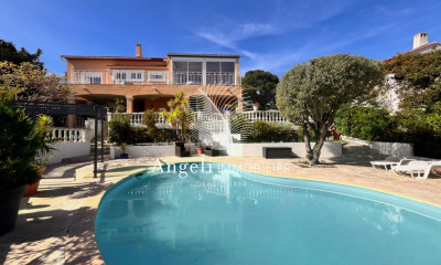 **SOUS OFFRE DANS NOTRE AGENCE** Dans un environnement résidentiel calme, Villa au style Néo-Provençale comprenant une entrée, toilettes invités, cuisine ouverte sur un séjour double, cellier salle de billard. Une suite aprentale avec spacieux dressing et salle d'eau attenante. A l'étage : 2 lumineuses chambres 2 donnant accès à une terrasse avec vue mer, une salle d'eau avec toilettes, une salle de bains complète (bain, douche, toilettes). Un superbe terrain plat et paysager de 1112m² avec terrasse couverte, piscine au sel, pool house, pergola bio climatique. Grande Cave en sous-sol. Domotique, alarme, caméras, climatisation, arrosage automatique, façade refaite, car port pour 2 voitures. Les informations sur les risques auxquels ce bien est exposé sont disponibles sur le site Géorisques :