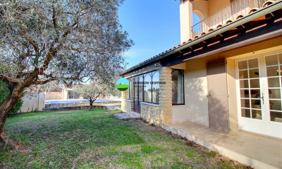 Située dans un environnement recherché de Caromb, cette propriété conjugue volumes, luminosité, confort moderne et potentiel locatif. La maison principale, d'environ 165 m², offre au rez-de-chaussée un superbe espace de vie : salon spacieux et très lumineux avec cuisine récente. Une chambre de plain-pied, une salle de bain complète, des placards, une buanderie, ainsi qu'un grand garage avec de nombreux rangements complètent ce niveau. À l'extérieur, une belle piscine s'intègre harmonieusement au jardin. À l'étage, vous trouverez trois chambres et un bureau, idéal pour le télétravail ou une pièce polyvalente. Un gîte indépendant d'environ 43 m² vient enrichir l'ensemble : séjour avec cuisine, une chambre, un bureau et une salle d'eau. Parfait pour accueillir famille, amis ou développer une activité locative. Le tout est implanté sur une jolie parcelle de plus de 1 000 m² avec piscine, . Le confort thermique est assuré par une pompe à chaleur en gainable, performante et économique. Construite en 2008 et entièrement rénovée il y a deux ans, cette maison ne nécessite aucun travaux. Un bien complet, bien pensé, dans un secteur à deux pas du village où les opportunités sont rares. Une visite virtuelle est disponible sur notre site. À visiter sans tarder. LUBERON VENTOUX IMMOBILIER à CAROMB Les informations sur les risques auxquels ce bien est exposé sont disponibles sur le site Géorisques :
