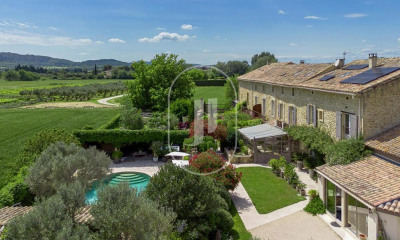 Maison à vendre par notre agence immobilière d'Isle sur la Sorgue. Maison provençale avec piscine à vendre proche de Châteauneuf du Pape, dans le Gard, sur un terrain de plus de 7000m², en zone verte inconstructible. D'une surface d'environ 225m² cette propriété se situe dans un environnement calme, entourée de vignes avec une exposition plein Sud. Demeure de caractère, entretenue avec soin par ses propriétaires, propose un cadre de vie idéal pour une résidence familiale. Les espaces de vie intérieurs, spacieux et aérés, sont aménagés avec charme et raffinement apportant à l'ensemble un caractère unique et une atmosphère élégante et naturelle. Au rez-de-chaussée, un hall d'entrée permet un accès direct sur la terrasse et sa tonnelle. Sur la droite, un grand salon où trône une majestueuse cheminée, de l'autre côté une magnifique cuisine provençale qui rejoint une salle à manger avec une superbe vue sur le parc arboré de la propriété. Une pièce de musique, un bureau et une chambre avec salle de bain viennent compléter le rez-de-chaussée. L'étage, dédié à la partie nuit, dispose de trois chambres, lumineuses et climatisées ainsi que d'une salle de bain séparée. L'extérieur de la propriété est un véritable écrin de verdure dans lequel plusieurs variétés d'arbres tels que chênes verts, pins parasols, cyprès vous offrent ombre et rafraîchissement au plus fort du soleil provençal. Ce somptueux jardin verdoyant, abritant de magnifiques lauriers roses , est un lieu propice à la tranquillité et à la rêverie . S'ajoute une piscine de 10x5m , bordée d'une plage en pierres, d'un salon d'extérieur à l'abri d'un auvent , d'une très belle terrasse recouverte par une tonnelle de vigne vierge sous laquelle vous apprécierez des moments de convivialité en toute intimité. Cabanon de la piscine, abri voitures et cabane à outils viennent compléter cet espace. Idéalement située, la propriété est à 20 minutes d'Avignon, d'Orange, et de la gare TGV Avignon et à 10 minutes d'un grand centre commercial, de l'autoroute et de Châteauneuf du Pape. Maison à vendre par l'agence immobilière d'Isle sur la Sorgue, en France. Les informations sur les risques auxquels ce bien est exposé sont disponibles sur le site Géorisques : “Conformément à la réglementation en vigueur, la surface DPE de ce bien est établie sur la base d'un mesurage normé de la surface habitable. Ce mesurage peut différer de la surface totale mesurée avec précision par nos équipes commerciales.”