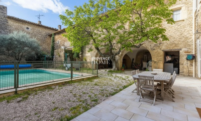 Cette propriété de plain-pied en pierre, offrant des vues extraordinaires et époustouflantes sur le Luberon, est située dans un cadre charmant à seulement quelques minutes du village mondialement connu de Gordes. Entièrement rénovée en 2005, elle allie commodité moderne et caractère provençal. La maison se compose de deux ailes. La première aile comprend : un salon/salle à manger spacieux de 50 m² avec une élégante cheminée en pierre et des portes ouvrant sur la terrasse ; une cuisine sur mesure équipée d'appareils électroménagers neufs et de plans de travail en granit ; deux chambres avec salles de bains attenantes ; une buanderie ; un WC invité. Une belle bibliothèque et un espace bureau mènent, par quelques marches, à la deuxième aile qui comprend : un salon supplémentaire ; deux chambres avec salles de bains attenantes. Pour les amateurs de vin, le sous-sol abrite une élégante cave à vin de 12 m², équipée d'étagères en fer forgé pour stocker des centaines de bouteilles de vin ainsi que l'huile d'olive produite à partir des oliviers de la propriété. L'accès à la propriété se fait par un portail automatique menant à un vaste espace de stationnement. Le terrain, parfaitement entretenu, s?étend sur plus de deux hectares et comprend un garage double de 40 m², un local technique, un espace de rangement et un pool house. 75 oliviers et une borie complètent ce cadre provençal idyllique. Une terrasse couverte de 33 m longe toute la maison, offrant beaucoup d?ombre pour profiter des longues journées d?été. La piscine au sel de 11 m x 5 m bénéficie des mêmes vues superbes que la maison, ce qui en fait un lieu parfait pour se détendre, complété par une cuisine d'été. Les magnifiques couchers de soleil de la propriété en sont le joyau. Les prestations comprennent : cuisine entièrement équipée ; chauffage au sol ; cheminée ; eau de ville ; double vitrage ; système d?alarme ; sous-sol avec cave à vin. Cette propriété bénéficie d?un emplacement exceptionnel, offrant un accès facile au c?ur du village par un sentier piétonnier partant directement de la propriété. Gordes a récemment été désigné comme l?un des plus beaux villages du monde. Que vous recherchiez une maison familiale, une luxueuse résidence de vacances ou un excellent investissement locatif, cette propriété contemporaine exceptionnelle répond à toutes les attentes. Les informations sur les risques auxquels ce bien est exposé sont disponibles sur le site Géorisques : http://www.georisques.gouv.fr