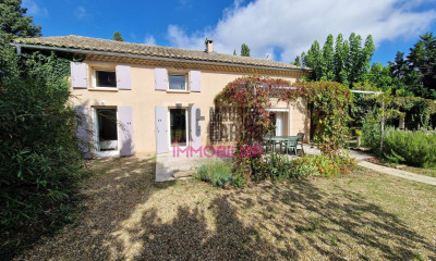 Nichée dans un coin paisible de Lagnes, cette adorable maison récemment construite dans le style traditionnel provençal séduit par son authenticité et son charme. Édifiée par des artisans de la région, avec des matériaux nobles tels que la pierre de Gordes et de Ménerbes, elle bénéficie d?un emplacement privilégié, à distance de marche du centre du village. Lagnes est un village vivant toute l?année, animé par ses commerces de proximité ? bars et restaurants, boulangerie, coiffeur, pharmacie, cabinet médical ? et entouré de paysages emblématiques du Luberon. Depuis le jardin, les vues s?étendent majestueusement vers les Alpilles, le Luberon et le Mont Ventoux. L?emplacement de la maison est idéal pour profiter de tout ce que le Luberon a à offrir : explorer les célèbres villages perchés des alentours ou passer la journée à L?Isle-sur-la-Sorgue, ville voisine dynamique connue pour ses boutiques, restaurants, antiquaires et marchés en plein air deux fois par semaine. Le rez-de-chaussée se compose d?un salon-salle à manger lumineux en espace ouvert avec cheminée électrique, bordé de portes-fenêtres donnant sur une grande terrasse ombragée. Un bar petit-déjeuner pratique sépare la pièce du coin cuisine plein de charme. Entièrement équipée (y compris un réfrigérateur à vin), la cuisine présente des murs en pierre apparente, un plafond typiquement provençal et une fenêtre à encadrement en fer forgé donnant sur l?entrée, apportant un maximum de lumière. Une porte ouvre sur une autre terrasse, parfaite pour les repas en extérieur. Le rez-de-chaussée comprend également un bureau, une buanderie avec espace de rangement, ainsi qu?un WC invités. À l?étage : chambre principale avec dressing (possibilité de le transformer en salle d?eau privative). Deux autres chambres avec placards intégrés ; salle de bains familiale avec double vasque, baignoire et douche ; WC séparé. L?escalier menant à l?étage est en pierre de Ménerbes, avec contremarches ornées de jolis carreaux décoratifs. Le jardin, d?une superficie d?environ 2000 m², en pente douce, est soigneusement paysagé avec des essences locales matures : oliviers, chênes, figuiers, lauriers-roses, agapanthes et hortensias. Il mène à l?espace piscine, intime et propice à la détente, avec sa cuisine d?été tout équipée (évier, frigo, grill). Que ce soit pour partager un déjeuner en terrasse, se détendre à l?ombre ou profiter du soleil au bord de la piscine au sel (9,5 m x 4 m), vous savourerez ici la quiétude et la douceur de vivre provençales. Les équipements comprennent : climatisation réversible avec pompe à chaleur ; chauffage central au gaz ; cheminée électrique ; eau de ville et raccordement au tout-à-l?égout ; internet fibre ; alarme et caméras de sécurité ; portail électrique ; arrosage automatique alimenté par l?eau du Canal de Provence. Nombreuses places de stationnement, carport pour deux voitures avec abri. Vide sanitaire. Cuisine d?été. Terrain de pétanque. Un lieu de vie où il fait bon poser ses valises ? chaleureux, élégant, et parfaitement prêt à vous accueillir. Que ce soit en tant que résidence principale, maison de vacances ou investissement locatif, cette propriété coche toutes les cases. À moins d?une heure de la gare TGV d?Avignon et de l?aéroport de Marseille, elle représente un véritable havre de paix au c?ur du Luberon. Les informations sur les risques auxquels ce bien est exposé sont disponibles sur le site Géorisques : http://www.georisques.gouv.fr