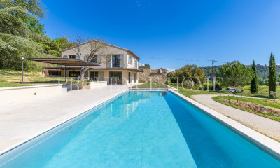 Perchée au sommet du légendaire village de Ménerbes, au c?ur du Luberon, cette propriété exceptionnelle jouit de vues absolument imprenables sur la vallée environnante. Située juste au-dessus de la célèbre Citadelle de Ménerbes, la maison offre une intimité et une tranquillité totales tout en se trouvant à seulement quelques pas des commerces, restaurants, cafés et bars du village. Il s?agit sans nul doute de l?un des emplacements les plus exclusifs que puisse offrir la vallée du Luberon. Le rez-de-chaussée comprend : un superbe salon/salle à manger de 56 m², baigné de lumière naturelle grâce aux grandes portes-fenêtres et agrémenté d?une élégante cheminée en pierre ; la salle à manger se prolonge vers une cuisine bien équipée avec un îlot central ; une chambre (actuellement utilisée en petit salon) avec salle d?eau attenante ; WC invités. Le premier étage comprend : une spacieuse suite parentale avec salle de bains attenante, WC et bureau ; une seconde chambre double en suite avec salle de bains attenante, WC, bureau et terrasse privée surplombant le jardin et la piscine. Les bureaux de ces deux suites pourraient aisément être transformés en dressings si souhaité. Le jardin paysager est planté d?une charmante variété d?arbres et de plantes fleuries, créant un cadre particulièrement bucolique. Une vaste terrasse longe la façade et constitue l?endroit idéal pour les repas en plein air et les réceptions. Un chemin serpente à travers le jardin, longe un ravissant point d?eau, puis mène à un pavillon en fer forgé qui offre une vue remarquable sur le village de Ménerbes. Le terrain de 600 m² comprend également une piscine (8,5m x 5,5m) entourée d?une grande terrasse ensoleillée. La propriété comprend également un authentique pigeonnier aménagé, composé d?un salon, d?une chambre, d?une salle d?eau et d?une cuisine d?été attenante. Sa position dominante, au-dessus de Ménerbes, offre des vues panoramiques à 360 degrés sur la campagne environnante. Les prestations incluent : climatisation réversible ; cheminée en état de marche ; eau de ville ; arrosage automatique ; internet par fibre optique ; tout-à-l?égout. La propriété est entièrement clôturée et bénéficie de trois places de stationnement privées. Avec ses vues panoramiques exceptionnelles, son décor raffiné, ses vastes espaces de vie et son abondance de caractère, il s?agit d?une propriété véritablement remarquable dans l?un des villages les plus prisés de Provence. Les informations sur les risques auxquels ce bien est exposé sont disponibles sur le site Géorisques : http://www.georisques.gouv.fr