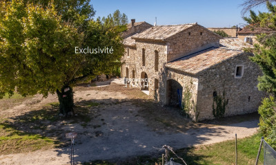 Provence Home, l'agence immobilière du Luberon, vous propose à la vente une magnifique bastide provençale du XVIIe siècle, entièrement rénovée de façon contemporaine avec de beaux matériaux, tout en préservant le charme de l'ancien. Située dans un hameau calme à proximité de Robion, cette propriété bénéficie d'un cadre authentique et préservé, proche des commodités et des attraits du Luberon. Nichée sur un terrain clos et arboré d'environ 7 300 m², elle dispose d'une cour intérieure, de plusieurs terrasses et d'une piscine naturelle de 15 mètres. La bâtisse principale offre environ 425 m² habitables. Au rez-de-chaussée, un vaste espace de vie voûté comprend la cuisine, le salon et la salle à manger, avec entrée, buanderie et WC invités. Au premier étage, un salon lumineux dessert deux chambres, un bureau et des WC. Au deuxième étage, la suite parentale avec salle d'eau, WC et dressing cohabite avec trois autres chambres, une salle de bains et des WC indépendants. Un Mazet indépendant de 100 m² comprend un séjour avec cuisine équipée, deux chambres à l'étage et une chambre indépendante supplémentaire. Chauffage électrique dans le Mazet, chauffage au sol et rafraîchissement dans la bâtisse principale. Cette propriété constitue un lieu idéal pour une grande famille ou un projet d'hébergement touristique haut de gamme. Prestations : eau du canal, tout-à-l'égout, arrosage automatique, garage pour deux véhicules, cave à vins en sous-sol.
